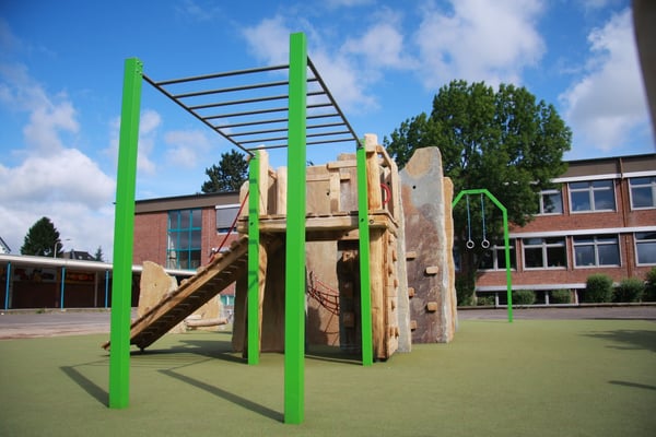 Dieses Objekt wurde durch Tapper und Hollmann nach Wünschen des Kunden entworfen. Die Firma Michael Kindt hat daraufhin eine Zeichnung erstellt und zwei farbige Entwürfe angefertigt. Die Anlage soll Spielen, Verstecken, Klettern, sportliche Betätigung und Bewegtes Sitzen beinhalten. Als Fallschutz wird eine grüne, fugenlose Fallschutzfläche aus Kunststoff eingebaut. Insgesamt eine tolle Sache die Anfang 2017 realisiert wird. Ein Objekt unserer Partner Kindt Spielplatzeinrichtungen GmbH und Fritz Müller GmbH.